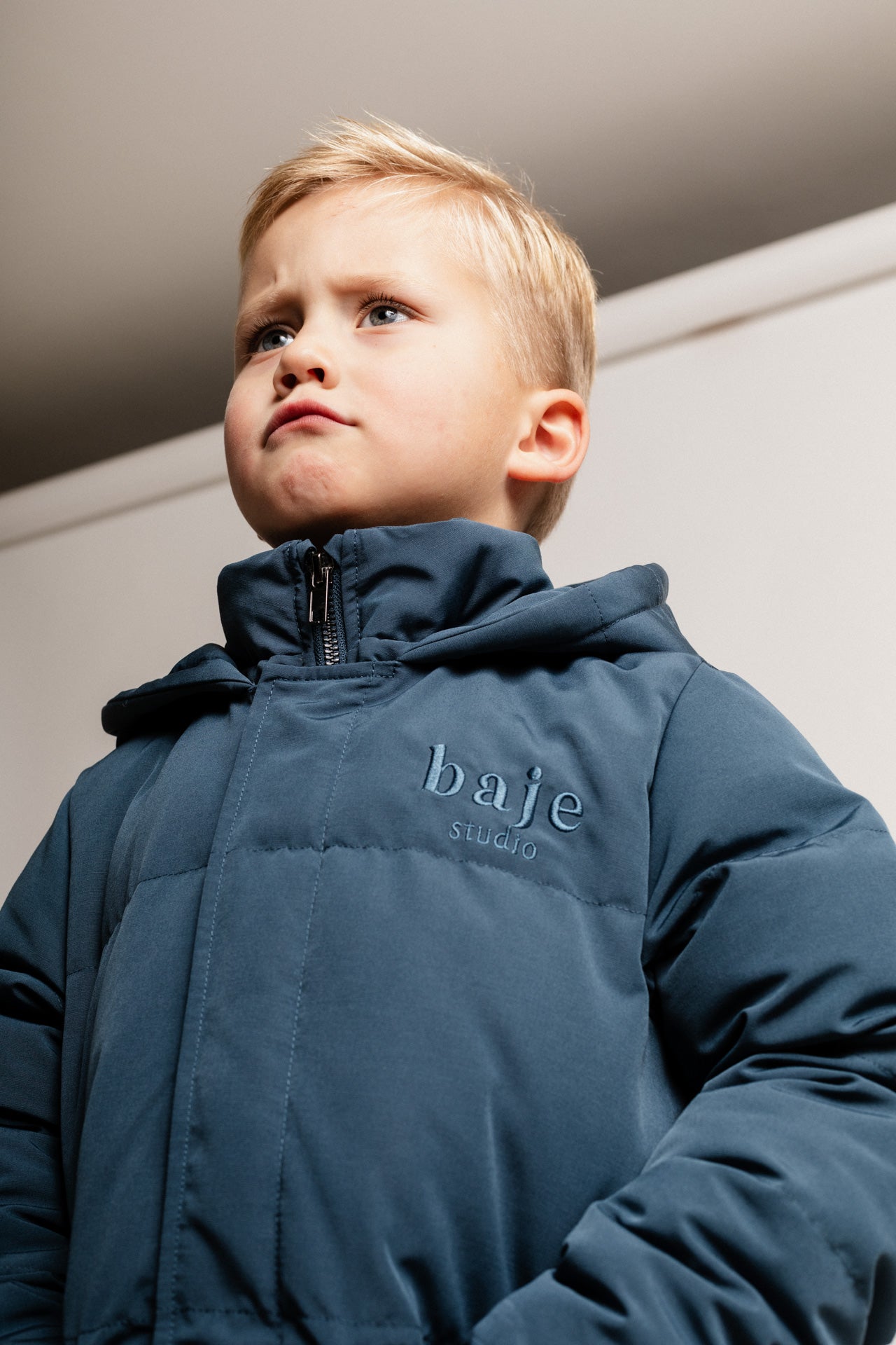De ultieme jongens winterjas van Baje Studio: warm, praktisch en stijlvol. Deze jas is ontworpen voor alle weersomstandigheden en is volledig winddicht en waterdicht. Dankzij de stevige ritssluiting en de comfortabele capuchon is je zoon altijd goed beschermd, of het nu stormt, regent of sneeuwt.