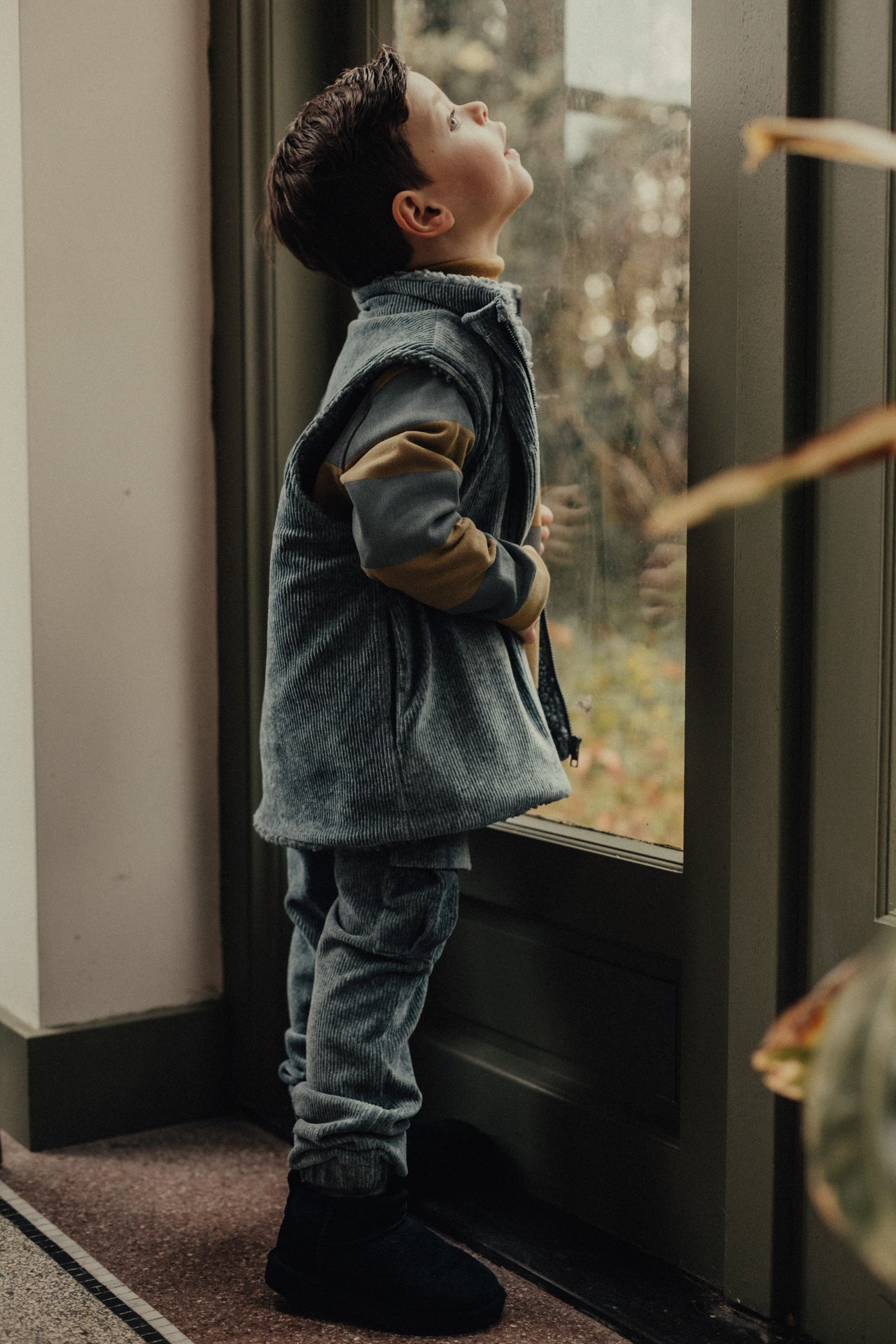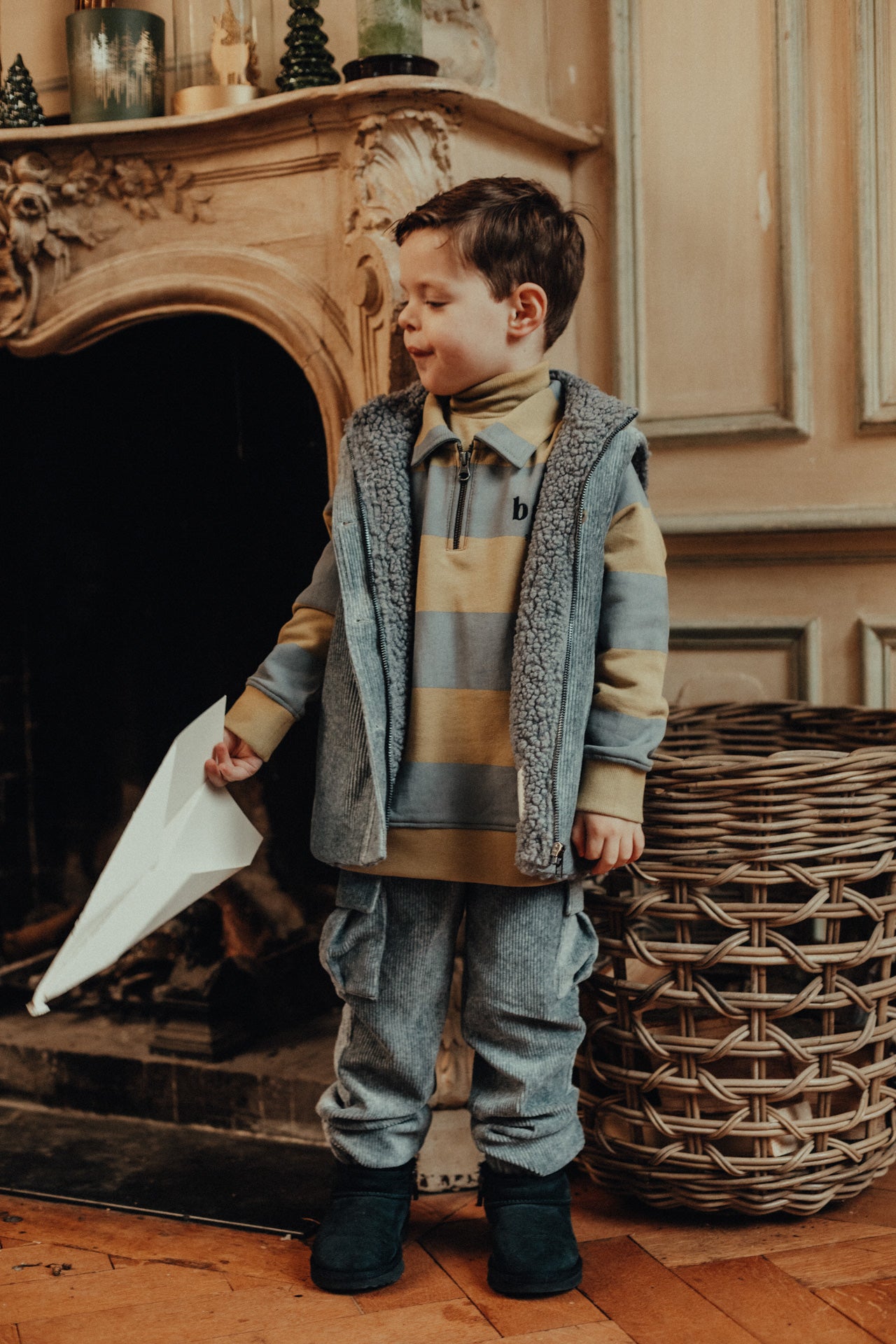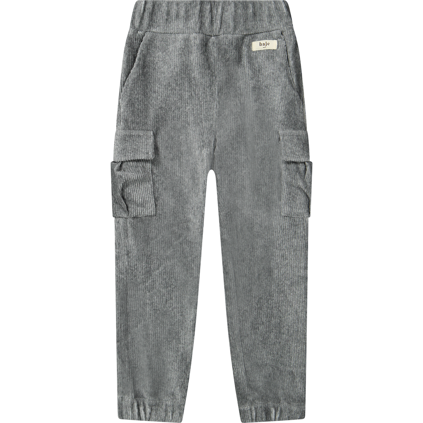 De elastische tailleband en boorden maken dat de broek altijd goed aansluit en heerlijk zit, ideaal voor actieve kinderen. Dankzij de neutrale kleuren grijs en groen is deze broek makkelijk te combineren met truien, hoodies en vesten uit de Baje Studio collectie.