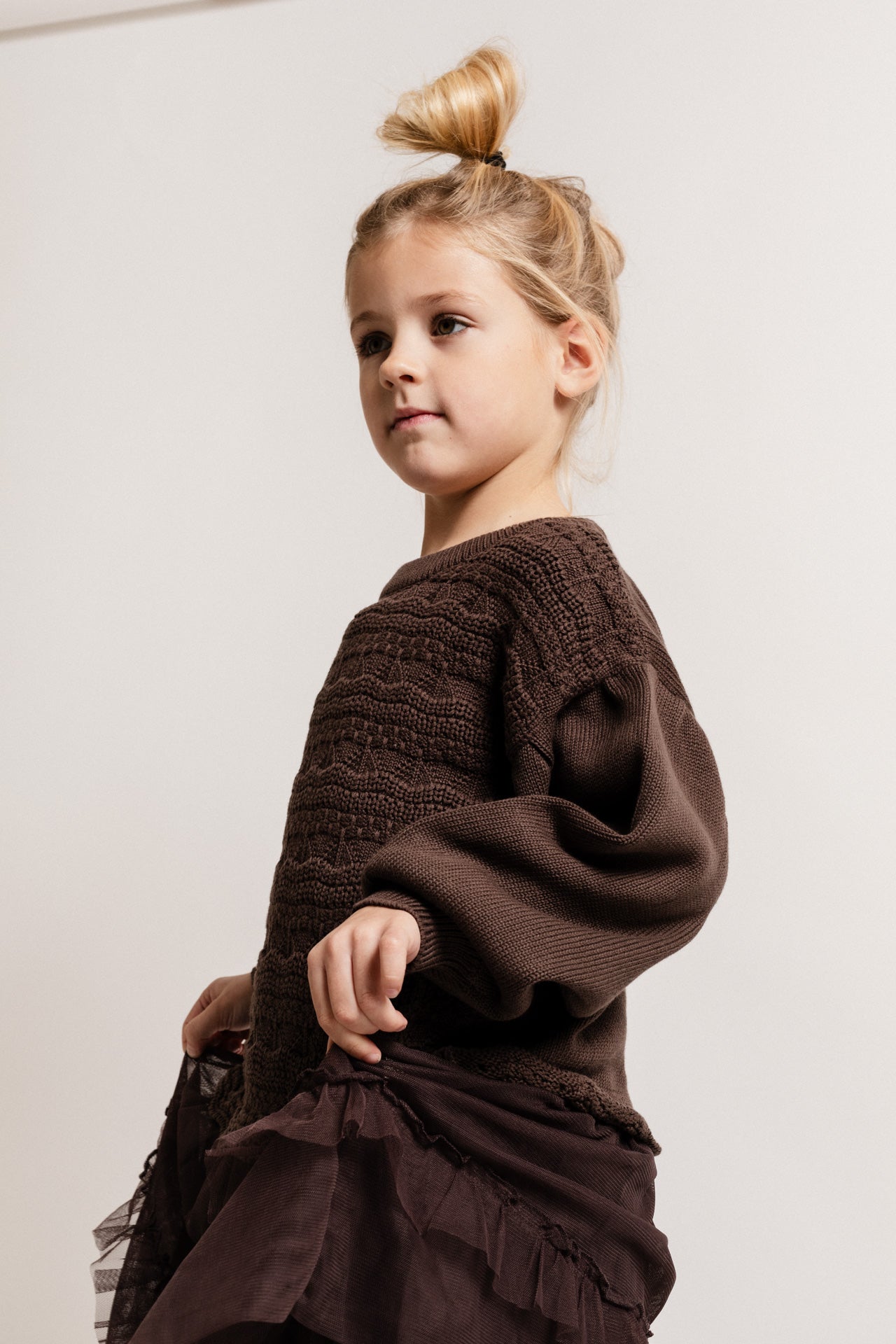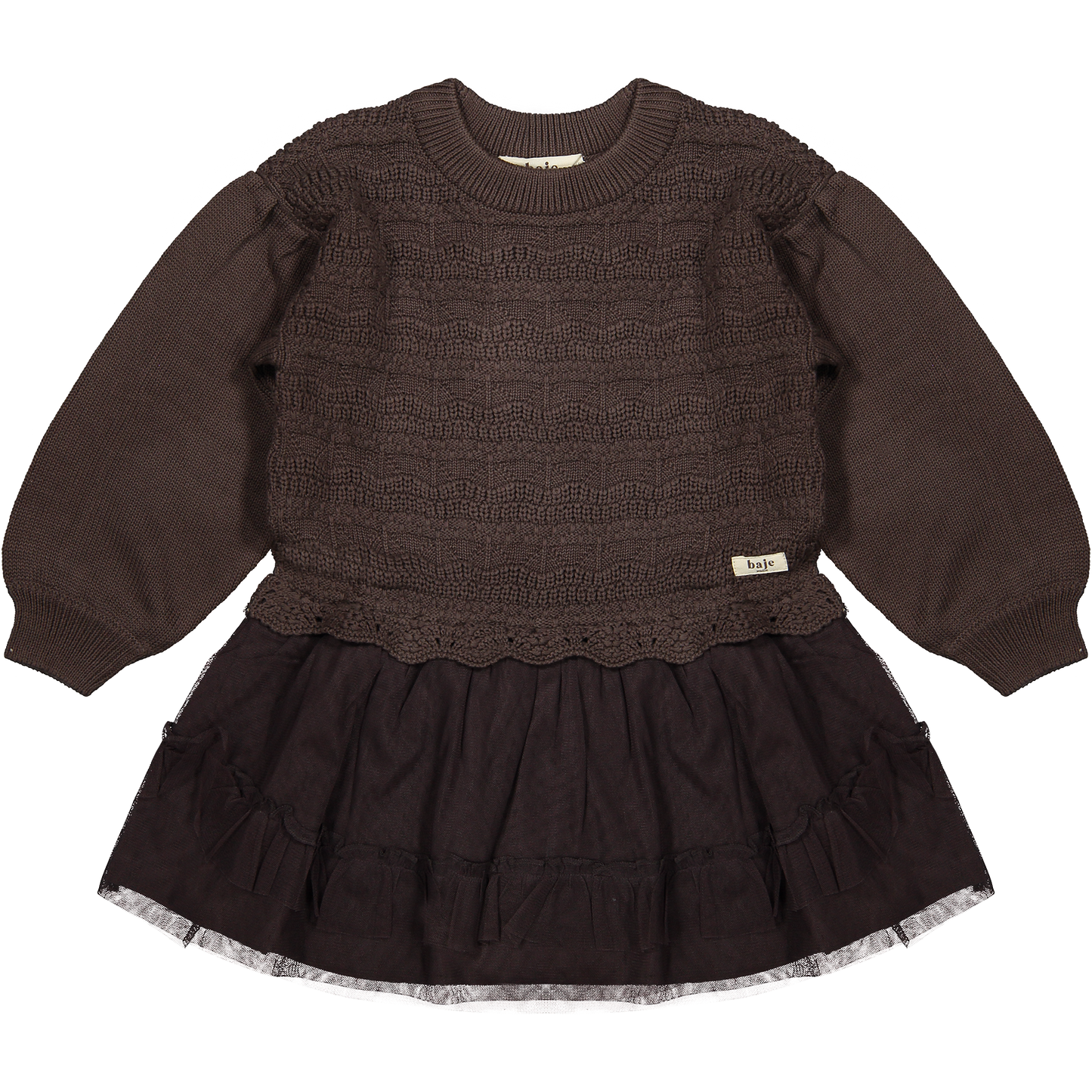 De Gemmi jurk van Baje Studio is een absolute favoriet voor de wintercollectie. Deze jurk combineert een warme, gebreide top met een speelse tule rok en is verkrijgbaar in paars en donkerbruin. Een unieke combinatie die comfort, stijl en elegantie samenbrengt.