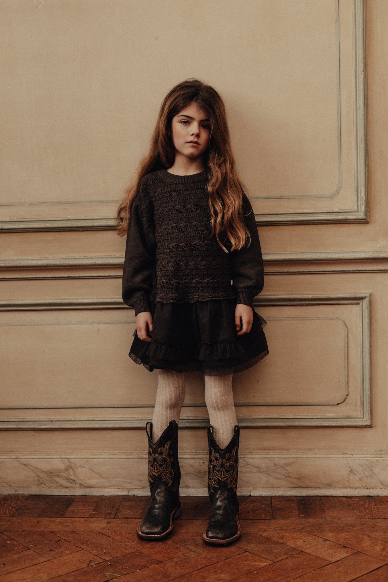 Meisjes jurk – Gemmi – knitwear top & tule rok – Baje Studio