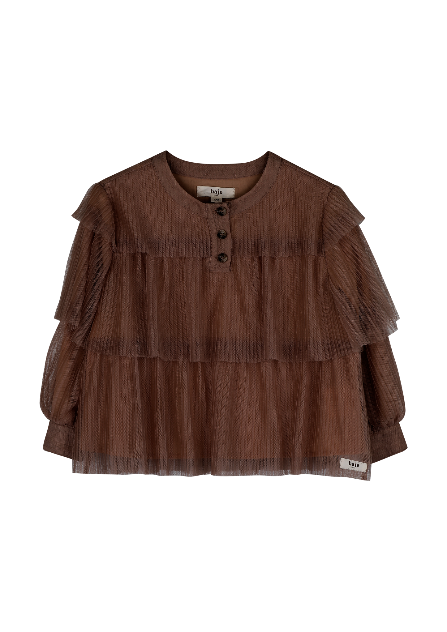Unieke meisjes blouse plissé – verkrijgbaar in peach/zand en bruin