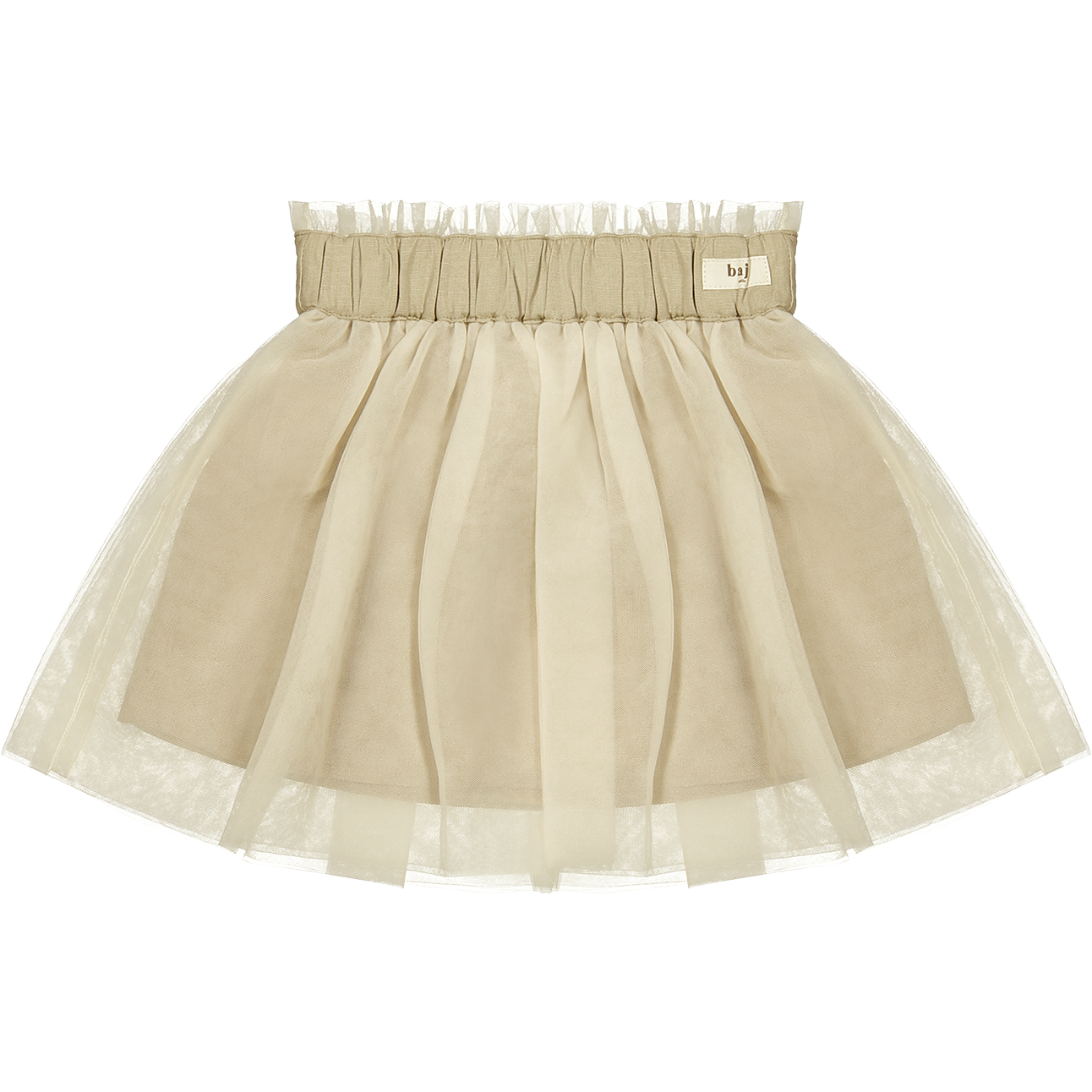 De ultieme favoriet van Baje: deze prachtige meisjes rok van tule in een zachte zandkleur. Een echte eyecatcher die elke outfit een feestelijke en dromerige uitstraling geeft.