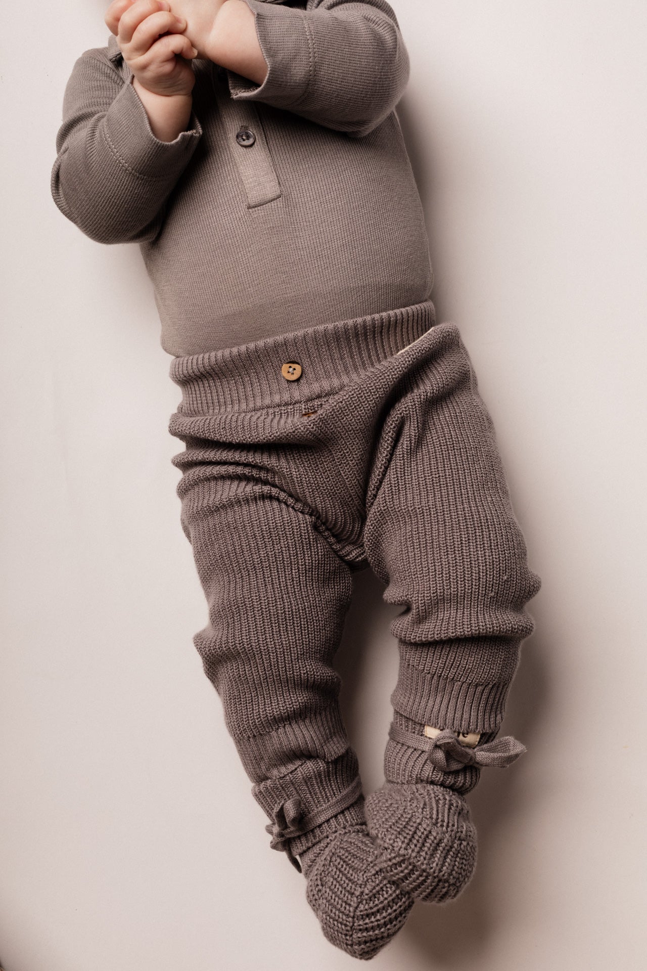 Knusse baby broek Wil – gebreid in grijs en groen
