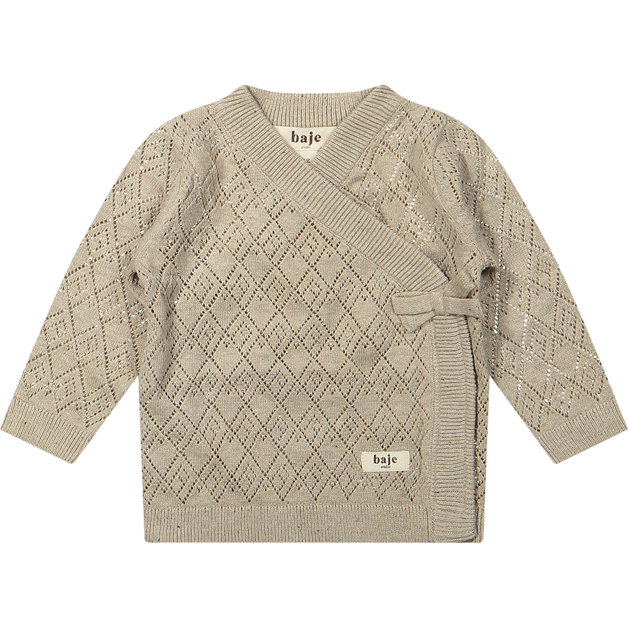 Dit lieve baby overslag vestje van Baje is een must-have voor de kleintjes. Het gebreide patroon geeft een klassieke en stijlvolle uitstraling, terwijl de praktische overslag met striksluiting zorgt voor makkelijk aan- en uittrekken. Ideaal voor pasgeborenen en baby’s die comfort en zachtheid verdienen.