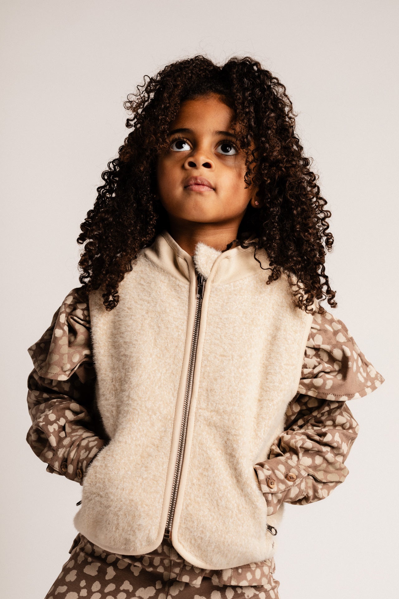 Bodywarmer Teddy Zand met Rits – Unisex Kinderen - Baje Studio