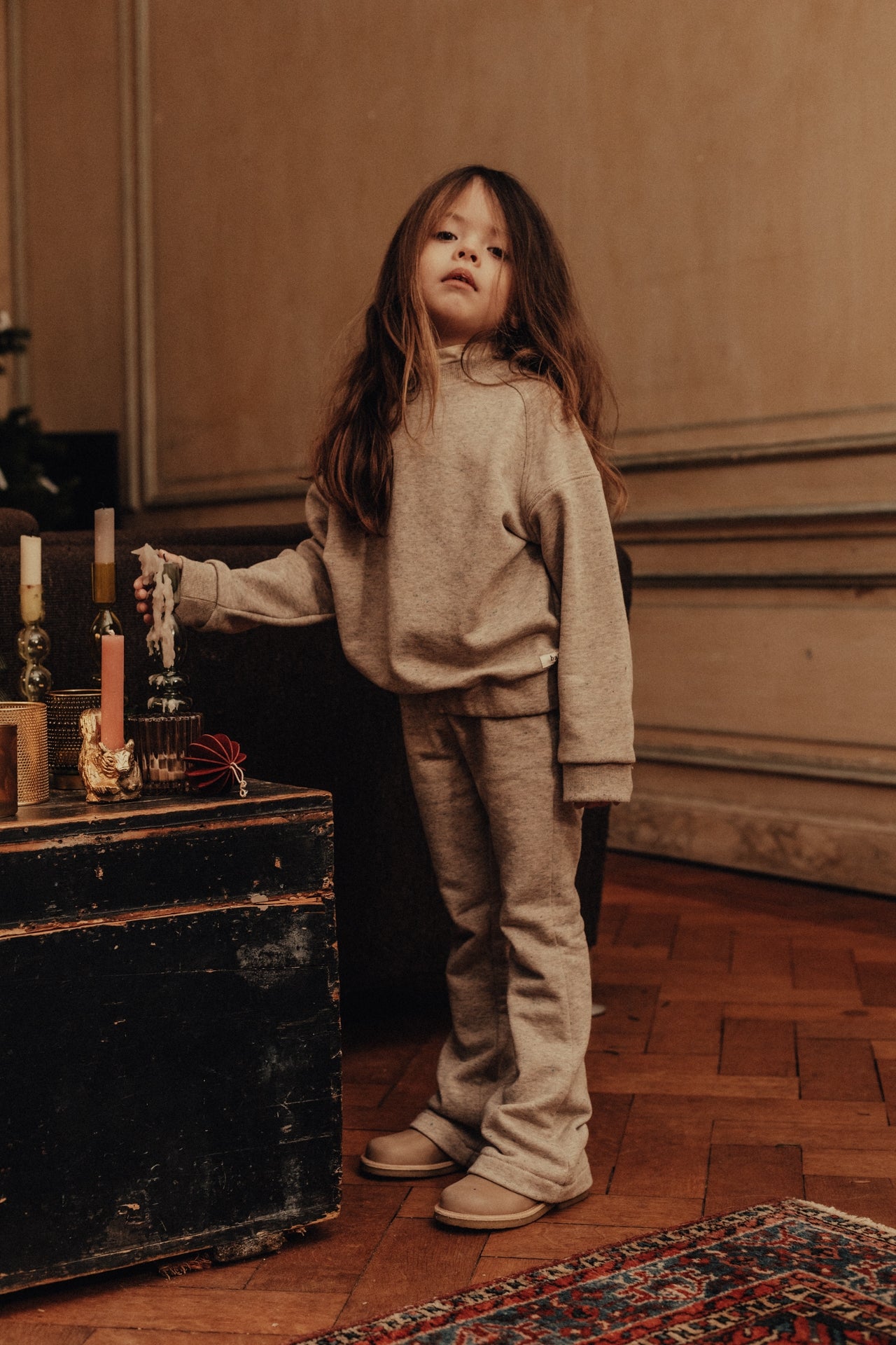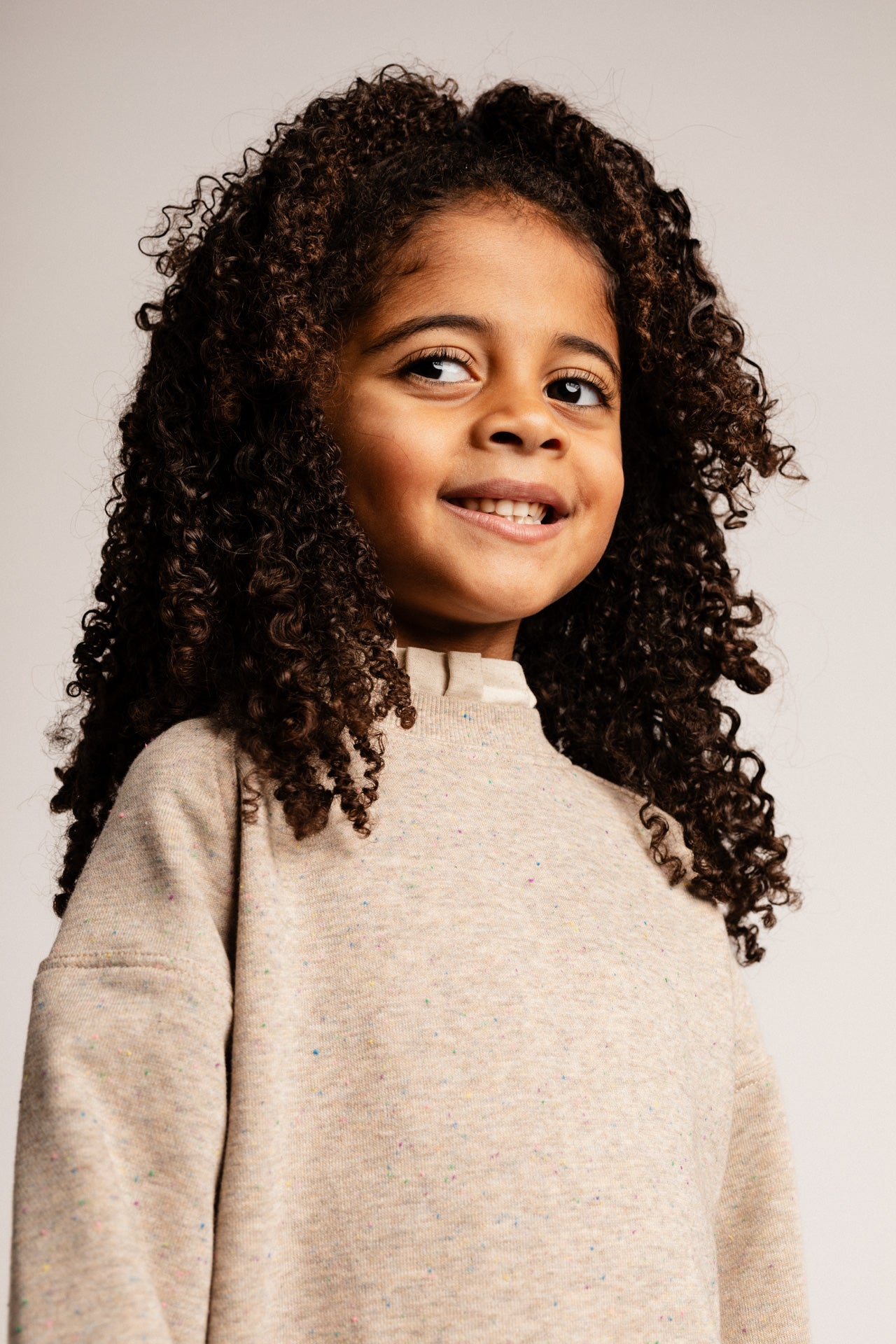 Deze sweater voor meisjes combineert het comfort van een zachte sweatstof met de elegantie van een linnen ruffle kraagje. De subtiele details maken van deze basic een uniek item dat zowel casual als netjes gedragen kan worden. De lichte zandkleur geeft de trui een tijdloze uitstraling en maakt hem eenvoudig te combineren met andere kledingstukken.