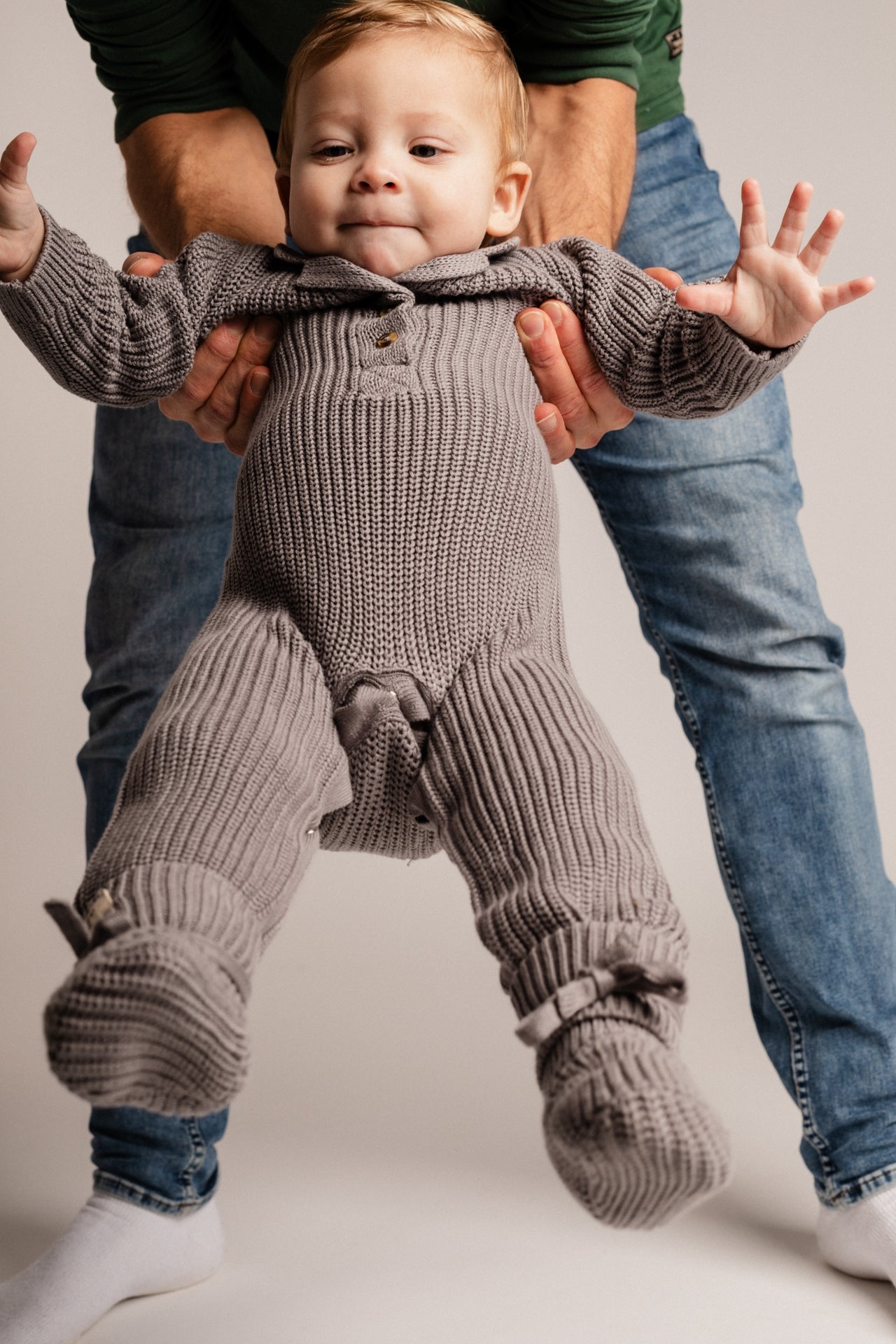 Dankzij het praktische ontwerp met omslagboord blijven de slofjes goed zitten en zijn ze makkelijk aan- en uit te trekken. De neutrale grijze tint maakt deze slofjes unisex en eenvoudig te combineren met elke outfit of newborn set uit de collectie.